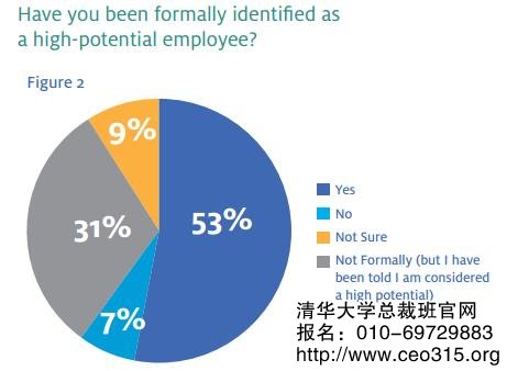 53%的受訪者表示自己的高潛力人才身份得到了組織的正式確認(rèn),32%表示得到了組織的非正式確認(rèn)。9%的參與者表示不確定,僅有7%的受訪者認(rèn)為自己并未被組織確立為高潛力人才。